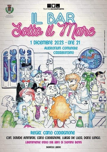 «Dopo i successi della tournée estiva, con spettacoli in diverse località abruzzesi, finalmente arriva anche a Casalbordino lo spettacolo "Il bar sotto il mare", liberamente tratto dal libro di Stefano Benni» è l’annuncio del Teatro Scomposto e dell’Amministrazione Comunale di Casalbordino nei giorni scorsi. L’appuntamento con lo spettacolo, ingresso gratuito, è venerdì 1° dicembre alle ore 21 presso l’Auditorium Comunale “Tito Molisani” in via Martiri dell’11 settembre.