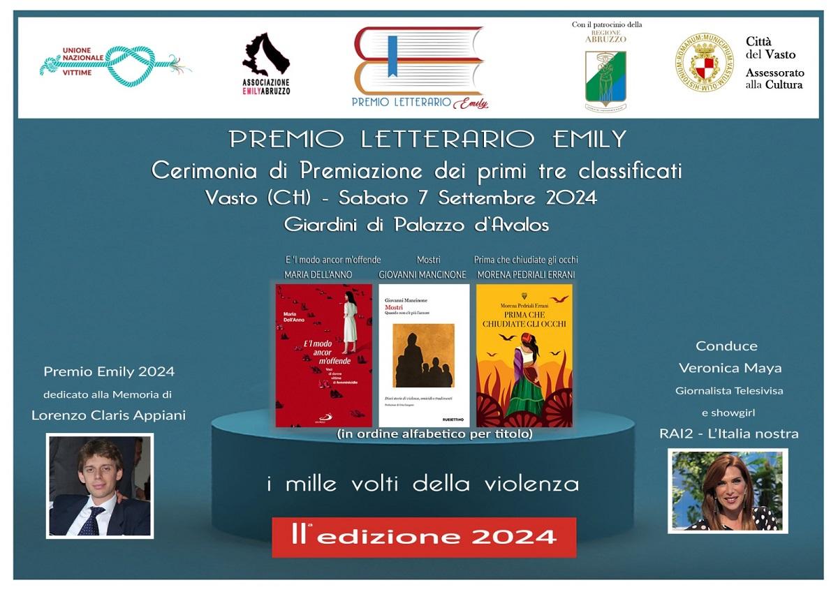 C’è grande fermento, orgoglio ed emozione “in casa” Emily Abruzzo e Unione Nazionale Vittime per la serata conclusiva del concorso letterario patrocinato dal Comune di Vasto e, da alcune settimane, anche dalla Regione Abruzzo. Dedicato alla memoria del giovane Avvocato Lorenzo Claris Appiani, ucciso nel Palazzo di Giustizia di Milano il 9 arile del 2015, il Premio Emily ha infatti riconfermato il suo successo tra il pubblico di scrittori, case editrici e amanti della lettura e della scrittura.