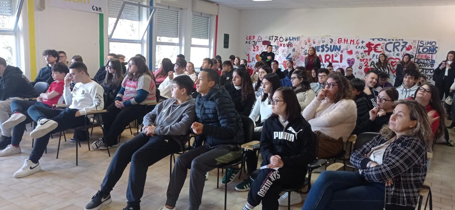 Gli studenti si sono riuniti nell’Aula Magna alla presenza della Dirigente Scolastica Dott.ssa Aida Marrone, da sempre molto sensibile a queste tematiche.