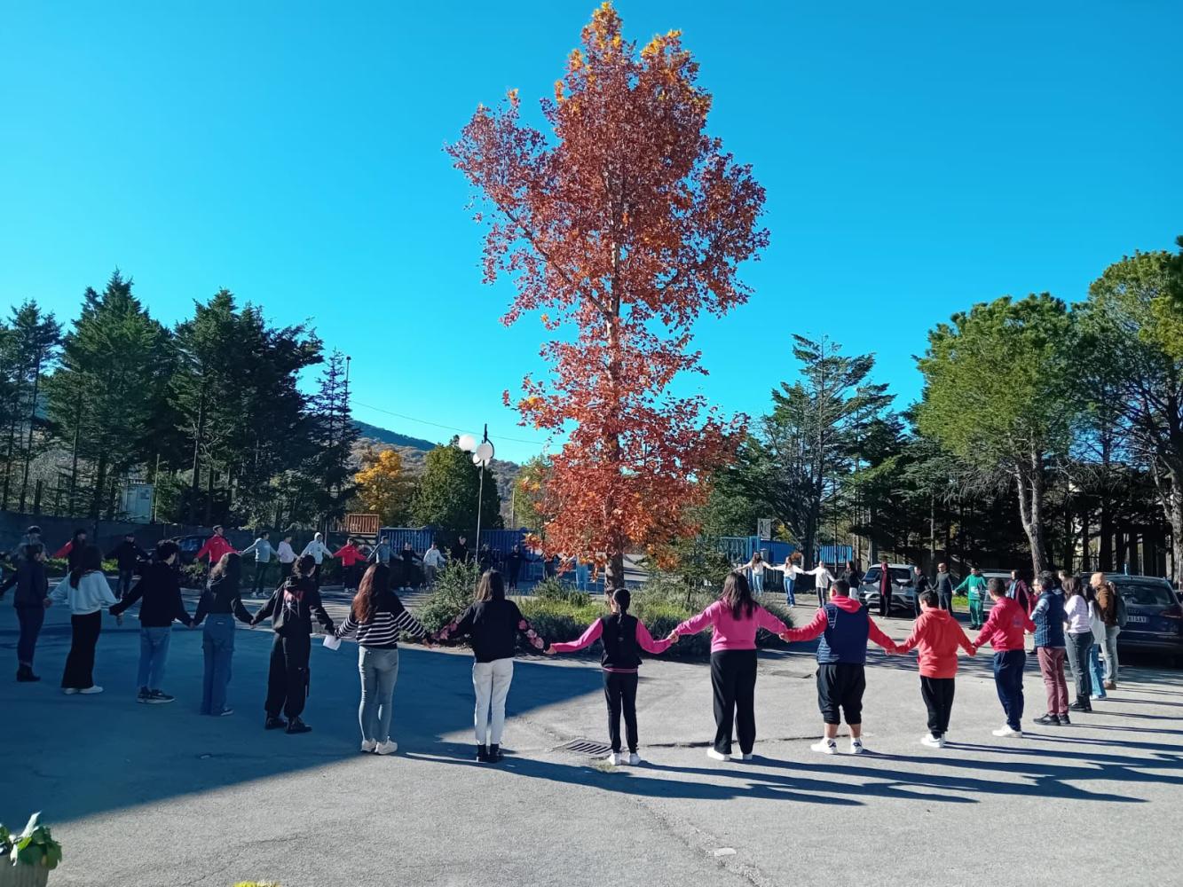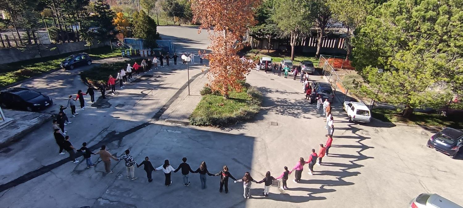 La mattinata si è conclusa con un abbraccio solidale, nel cortile della scuola, in entrambi i plessi, con il grido dello slogan: No alla violenza, Sì all’accoglienza!, a voler stringere tutte le vittime della violenza e a voler ricordare che l'amore non fa male, non colpisce in faccia mai, le relazioni vanno costruite sul rispetto, la comprensione, l’empatia e sostegno reciproco.