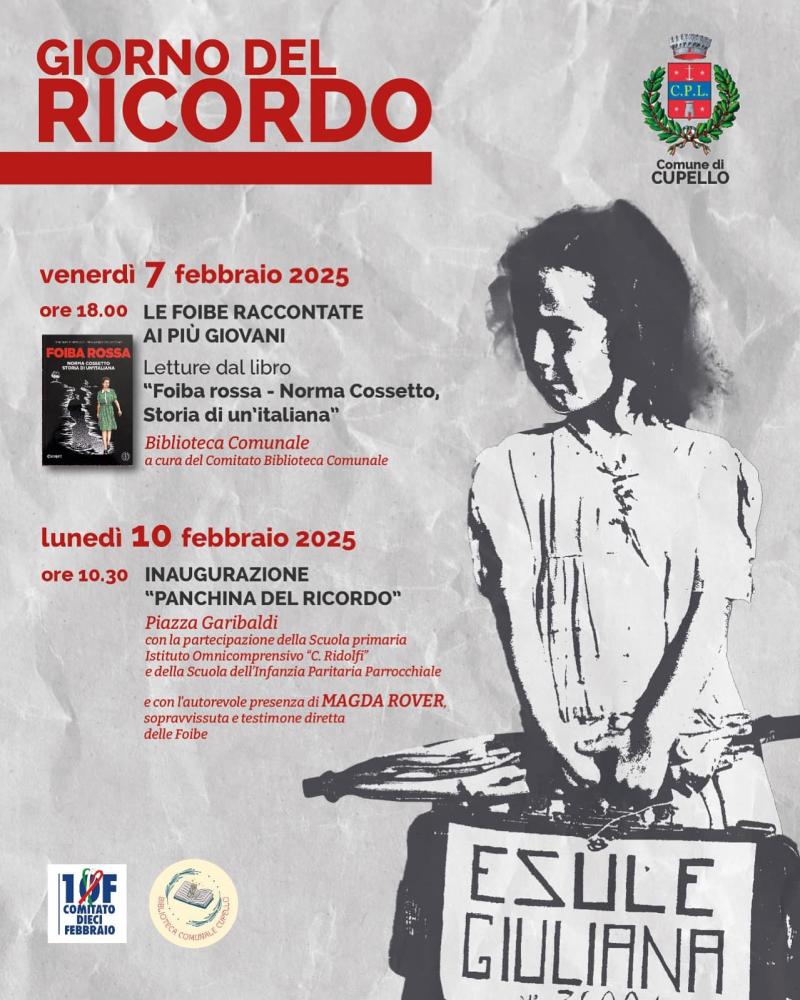 Gli eventi si svolgeranno in collaborazione con il Comitato 10 Febbraio e il Comitato Biblioteca Comunale.