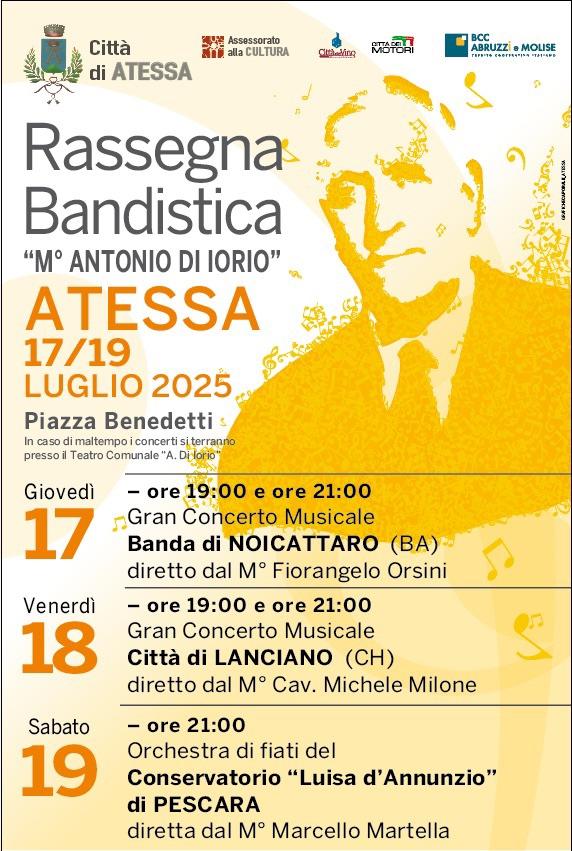 Torna uno degli appuntamenti storici e più amati dagli atessani. Tre giorni di musica classica completamente gratuiti dedicati alla memoria del celebre musicista e compositore abruzzese, Antonio Di Iorio, figura di riferimento per la cultura bandistica del nostro territorio.