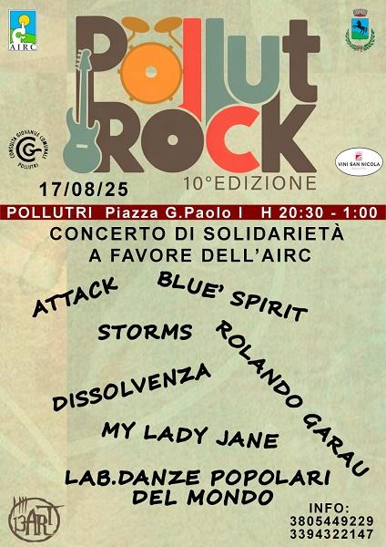 Si terrà domenica 17 agosto il concerto di solidarietà PollutRock. L'evento musicale, arrivato alla decima edizione, è patrocinato dal Comune e si terrà in piazza Giovanni Paolo I a Pollutri.