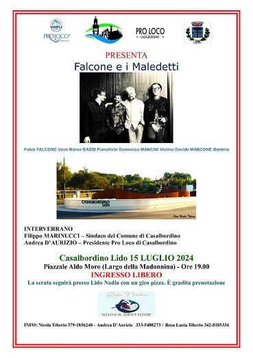 Protagonisti della serata saranno “Falcone e i maledetti”: si esibiranno Fabio Falcone (voce), Marco Bassi (pianoforte), Domenico Mancini (violino) e Davide Marcone (batteria).  Interverranno il sindaco di Casalbordino Filippo Marinucci e il presidente della Pro Loco Andrea D’Aurizio.