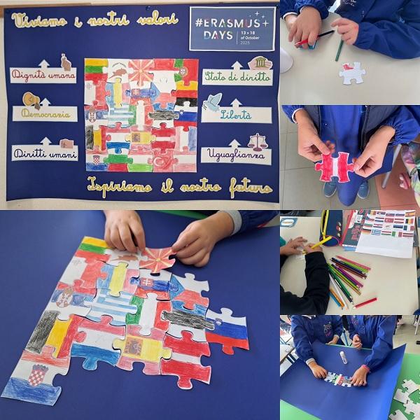 L’intera comunità scolastica – dalla scuola dell’infanzia alla secondaria di primo grado – è stata coinvolta in una serie di attività che hanno reso viva e concreta l’anima del progetto europeo. Durante la settimana, alunni e docenti si sono impegnati nella preparazione di lavori creativi e riflessivi ispirati ai valori fondamentali dell’Erasmus e dell’Unione Europea: libertà, democrazia, uguaglianza, inclusione, dignità della persona, rispetto dei diritti umani, insieme ai concetti di condivisione di esperienze e promozione di una cittadinanza europea attiva.