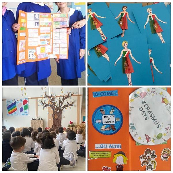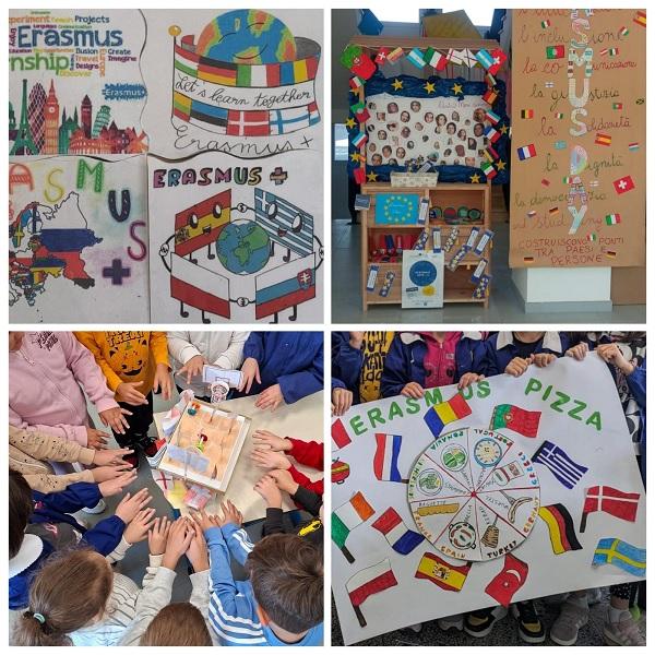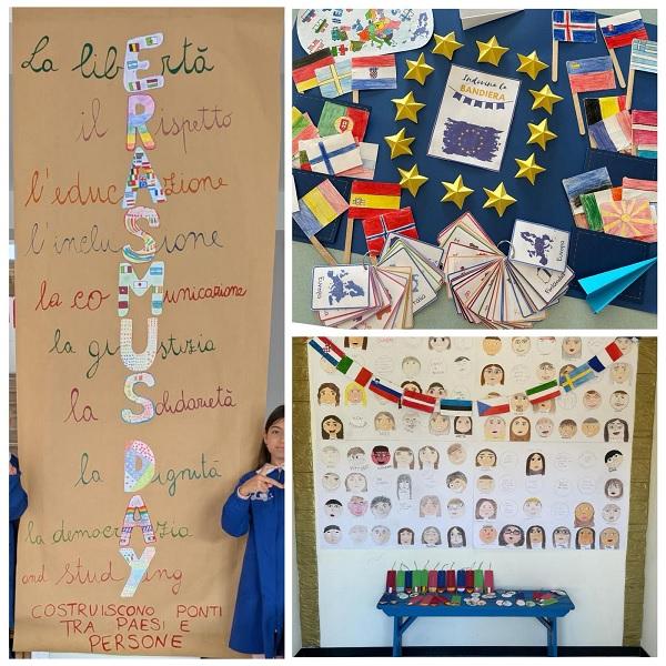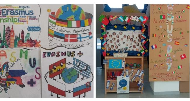 Le attività hanno preso forma in cartelloni, slogan, canti, gadget, coccarde, braccialetti, segnalibri e brochure, esposti in ciascun plesso scolastico negli appositi “Angoli Erasmus” allestiti con cura e creatività.