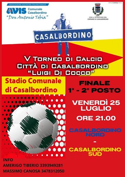 Si sta disputando in questi giorni il V Memorial “Luigi Di Cocco”, quattro le squadre partecipanti: Casalbordino Nord, Casalbordino Sud, Miracoli e Pollutri. Domani sera, 25 luglio, ci sarà la finalissima e saranno le prime due a contendersi la vittoria finale. Appuntamento alle ore 21 presso lo Stadio Comunale in via San Sebastiano.