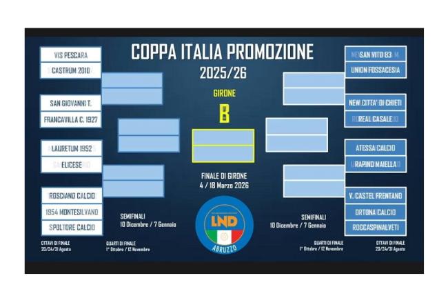 La LND Abruzzo, come era già accaduto per l’Eccellenza, ha definito tramite un sorteggio trasmesso in diretta sui propri canali social, il tabellone della Coppa Italia 2025/2026 di Promozione.