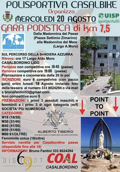 Tutto pronto per mercoledì 20 agosto a Casalbordino con una nuova edizione della corsa podistica a Casalbordino che collega le Madonnina del paese e quella del lido.
