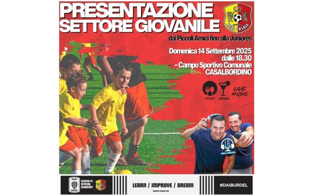 Domenica 14 settembre alle ore 18.30 l'Asd Real Casale presenterà il settore giovanile, dai “Piccoli Amici” alla “Juniores” protagonisti saranno i piccoli e futuri campioni giallorossi.