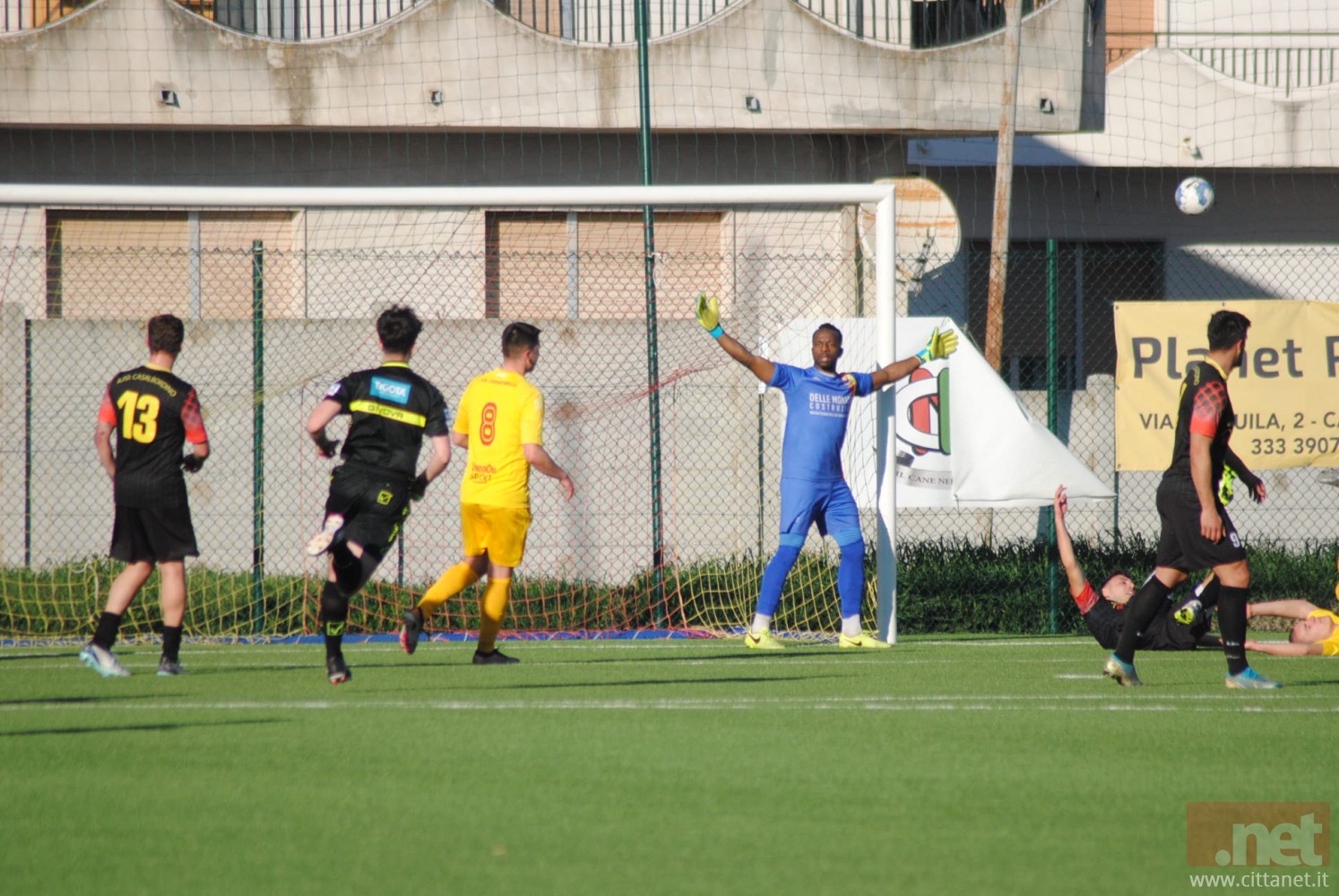 I gol: Mangiacasale e compagni, dopo una clamorosa traversa di Finizio in apertura e una rete annullata a Finizio per fuorigioco (tante proteste dei padroni di casa), sbloccano il punteggio nella fase finale del primo tempo con la deviazione di Budano sulla conclusione di Sciarretta. In apertura di ripresa ancora Budano a bersaglio, con una ‘gemma‘, una conclusione sotto l’incrocio dal limite dell’area che non lasciava scampo a Brassetti (nono gol stagionale per il giovane attaccante esterno). Poi il timbro di bomber Finizio, abile ad incrociare da destra dopo una pregevole azione in velocità e che può staccare di un gol il teramano D’Egidio in testa alla graduatoria marcatori. Da annotare, inoltre, un altro legno dei locali con Murga ed altre occasioni fallite per poco in area avversaria.