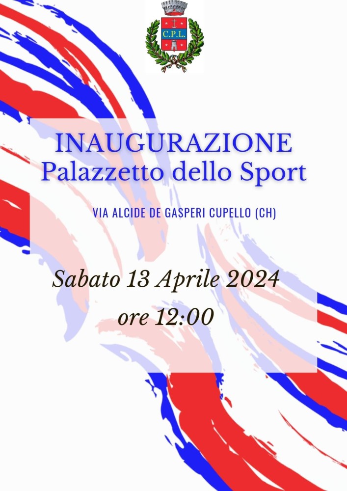 Dopo il periodo di chiusura, a causa dei lavori di ristrutturazione, finalmente sabato 13 aprile, alle ore 12.00, ci sarà la riapertura ufficiale del Palazzetto dello Sport in Via Alcide De Gasperi a Cupello.