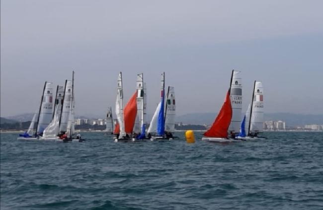 Le classi giovanili con equipaggi composti da due persone, timoniere e prodiere, si ritrovano sul campo di regata in Adriatico al largo di Pescara.
