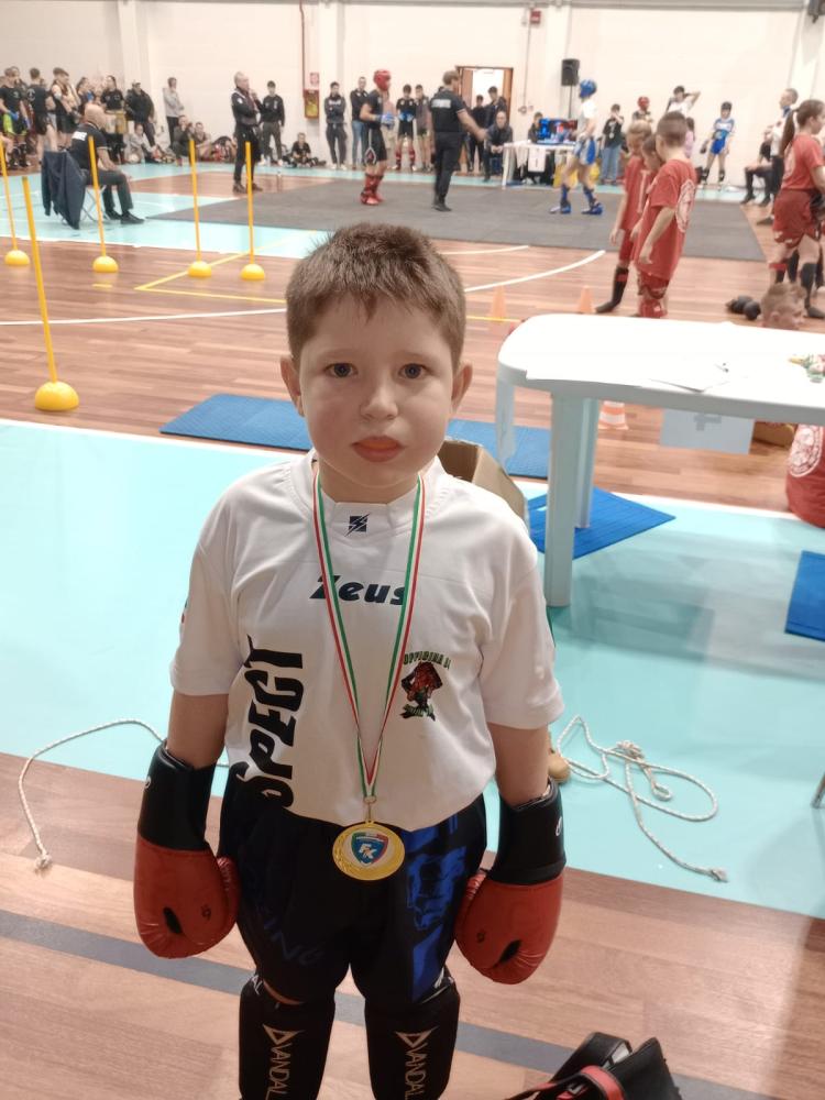 Michis Neli-Ermina, pure lui al debutto, ottiene l’oro nella -65kg Kick light