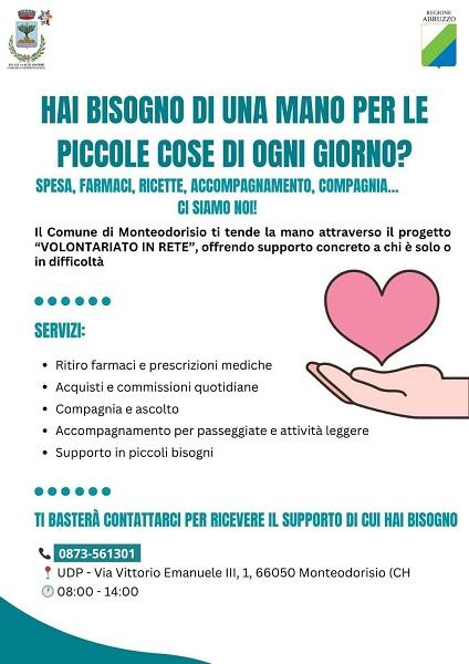 È stato attivato a Monteodorisio anche per l’annualità 2025 il Servizio di prossimità “Volontariato in Rete” dall’Amministrazione Comunale, in qualità di Ente Capofila dell’Ambito Distrettuale Sociale 14 “Alto Vastese”, guidata dal sindaco Catia Di Fabio.