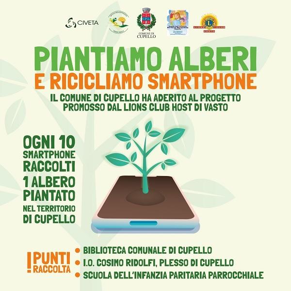 Il Comune di Cupello ha aderito al service nazionale Lions "Piantiamo Alberi e Ricicliamo Smartphone", promosso dal Lions Club Host Vasto con il patrocinio del Ministero dell'Ambiente e della Sicurezza Energetica.