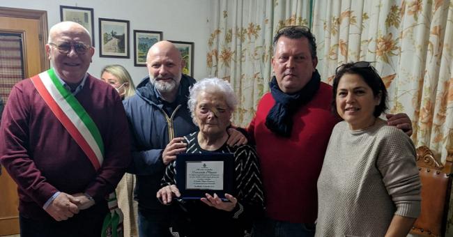 Uno straordinario traguardo festeggiato con i familiari, tanti amici e una rappresentanza dell’Amministrazione Comunale. Durante la festa il sindaco Filippo Marinucci, presente con la vicesindaca Carla Zinni e gli assessori Amerigo Tiberio e Paola Basile, ha consegnato alla signora Nunziatina una targa a celebrare questo suo importantissimo compleanno. Festa in cui zia Nunziatina ha dispensato sorrisi e risate, momenti di allegria e tutta la sua gioia.