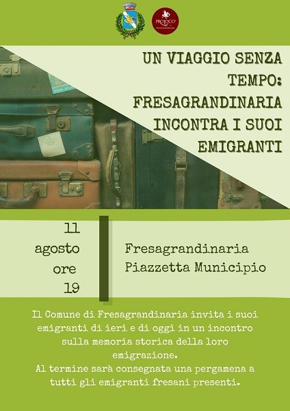La parola chiave è condivisione. Venerdì 11 agosto, alle 19.00 presso il Piazzale Municipio, il Comune e la Proloco di Fresagrandinaria organizzano un incontro “dialogato e narrato” con gli emigranti fresani di ritorno che avranno, in quest’occasione, la possibilità di condividere la loro storia con i propri compaesani.