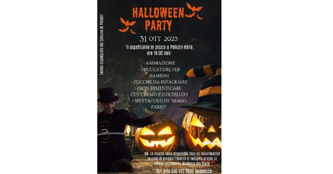 Festa di Halloween in Piazza Giovanni Paolo I a Pollutri. Appuntamento dalle ore 16 con animazione, truccatore per bambini, zucche da intagliare e lo spettacolo di Mago Fabio.