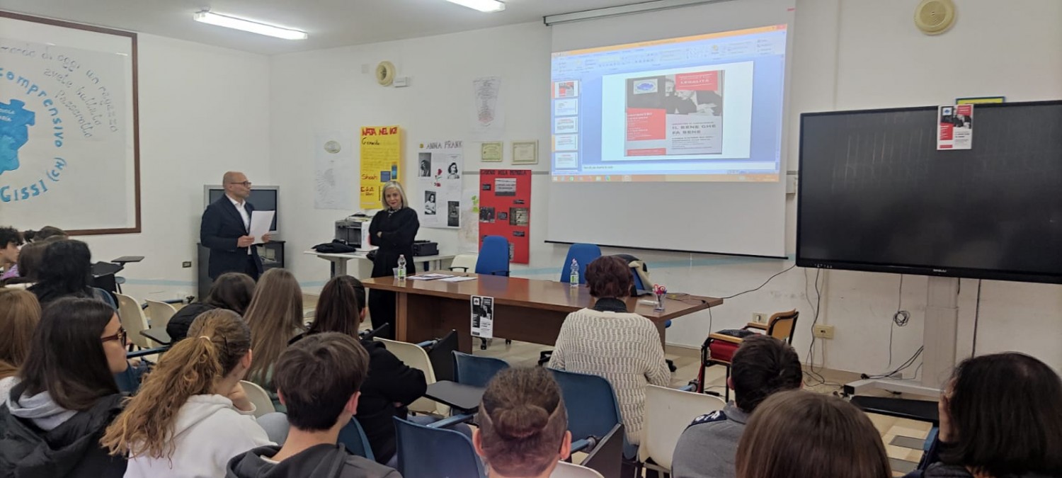 La scuola, grazie alla Dirigente Scolastica Dott.ssa Aida Marrone sempre attenta ad ogni iniziativa di formazione, da sempre in prima linea nella sensibilizzazione e nell'Educazione Civica, ha accolto la Dott.ssa Ornella Esposito, esperta di riutilizzo sociale dei beni confiscati alla mafia e giornalista, per condividere le sue esperienze e storie nella lotta contro il crimine organizzato, con la confisca dei beni e il riutilizzo degli stessi nel sociale.