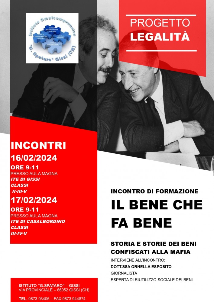 Nell'ambito del costante impegno della comunità scolastica dell'ITE di Gissi e Casalbordino nella lotta contro le mafie, si è tenuta nella giornata venerdì 16 febbraio a Gissi e nella giornata di sabato 17 febbraio a Casalbordino una significativa iniziativa che rafforza i valori della legalità , della giustizia e della partecipazione.