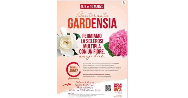 Per la festa della Donna, nelle principali piazze italiane, ritorna Gardensia. Scegli tra una gardenia e un'ortensia oppure sceglile entrambe. Grazie al tuo contributo potremo sostenere la ricerca scientifica su sclerosi multipla e patologie correlate e garantire e potenziare i servizi sul nostro territorio alle persone colpite, la maggior parte delle quali sono giovani e donne.