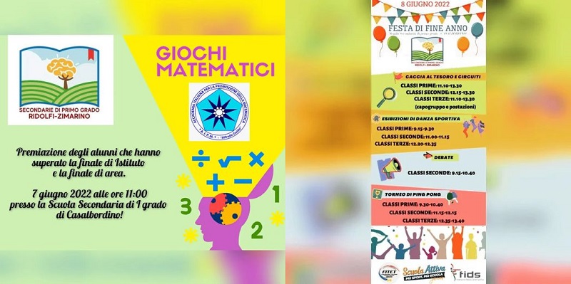Il concerto del prof. Di Toro è stato il momento conclusivo e culminante del ciclo di eventi di chiusura dell’anno scolastico dei plessi dell’Istituto Omnicomprensivo Ridolfi-Zimarino. Eventi in cui sono stati condivisi gioia e giochi, divertimento e tanto altro, in cui salutare le insegnanti che sono andate in pensione e scambiarsi gli arrivederci a settembre con insegnanti, collaboratori scolastici, alunne ed alunni. Ed in cui la ricca offerta formativa e i tanti eventi che hanno caratterizzato quest’anno scolastico, anche questi un ritorno alla vita e una rinascita dopo la lunga notte del covid che si spera possa presto essere definitivamente spazzata via dall’alba. Martedì 7 giugno la scuola secondaria di primo grado di Casalbordino ha premiato gli alunni che si sono distinti nei giochi matematici. Mercoledì 8, ultimissimo giorno di lezioni, le scuole primarie di Casalbordino hanno festeggiato anche insieme ai buonissimi gelati di un simbolo straordinario e rinomato del territorio – la Gelateria Polo Nord – mentre la scuola secondaria ha vissuto una ricchissima mattinata di giochi – tra cui il progetto “debate” seguito dal prof. Francesco Sfredda - ed esibizioni sportive a conclusione delle attività realizzate sotto la guida della professoressa di Educazione motoria Gabriella Mastropasqua
