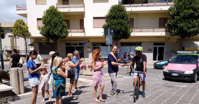 Accolto dal sindaco Enrico Di Giuseppantonio e dal vice  Maura Sgrignuoli, Gianluca Santacatterina, il ciclista di 56 anni che è partito da Schio (VI) ed è arrivato, dopo aver percorso ininterrottamente 550 km, in piazza Alessandro Fantini, a Fossacesia