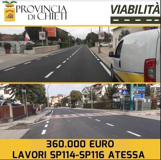 Sono stati ultimati i lavori di manutenzione straordinaria sui tratti della SP 114 “Atessa – Valle” e della SP 116 “Monte Marcone” con l'obiettivo di migliorare la sicurezza della viabilità in alcuni tratti delle due provinciali nel territorio di Atessa. I tratti interessati dagli interventi presentavano condizioni critiche, con sconnessioni del piano viabile, deformazioni della pavimentazione e problemi nei sistemi di raccolta delle acque meteoriche.