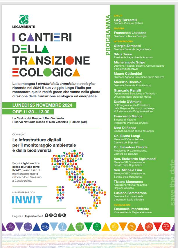 Il Convegno e il press tour organizzato dalla storica associazione ambientalista “Le infrastrutture digitali per il monitoraggio ambientale e della biodiversità” sarà l’occasione per presentare i dati sui monitoraggi sugli incendi e la qualità dell’aria nelle aree protette presso il sito di monitoraggio incendi del Bosco di Don Venanzio.