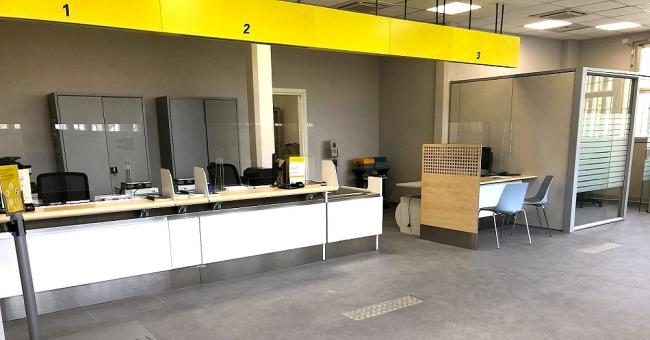 Nell'ambito degli interventi, si è proceduto a una completa riorganizzazione degli spazi finalizzata a ottimizzare la fruizione dell'ufficio con particolare attenzione al miglioramento del comfort ambientale e alla facilitazione dell'accesso ai servizi. In quest'ottica, tra le altre opere, si inseriscono la nuova configurazione della linea di sportelleria, la realizzazione di uno sportello con altezze ribassate per agevolare tutti i segmenti di clientela, l'inserimento di nuovi arredi, la realizzazione di una nuova sala consulenza e la posa di un percorso in rilievo sul piano di calpestio per consentire alle persone con deficit visivi la piena autonomia negli spostamenti all'interno della sala al pubblico senza l'ausilio di assistenza.