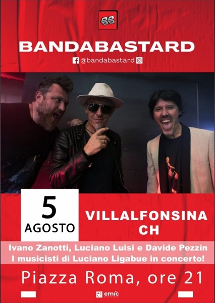 Bandabastard, trio esplosivo che si forma sotto la firma di Luciano Luisi, Ivano Zanotti e Davide Pezzin, grandi artisti, grandi musicisti che da anni suonano al fianco di Luciano Ligabue, faranno tappa venerdì 5 agosto a Villalfonsina per un'imperdibile serata all’insegna del rock e del funk!