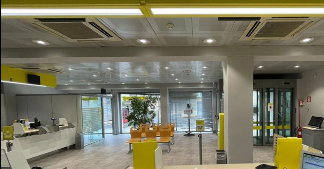Gli interventi di ristrutturazione. Con la completa riorganizzazione degli spazi Poste Italiane ha ottimizzato la fruizione dell'ufficio migliorando il comfort ambientale e alla facilitando l'accesso ai servizi. In quest'ottica, tra le altre opere, si inseriscono la nuova configurazione della linea di sportelleria, la realizzazione di due sportelli con altezze ribassate per agevolare tutti i segmenti di clientela, l'inserimento di nuovi arredi, la realizzazione di una nuova sala consulenza e la posa di un percorso in rilievo sul piano di calpestio per consentire alle persone con deficit visivi la piena autonomia negli spostamenti all'interno della sala al pubblico senza l'ausilio di assistenza.