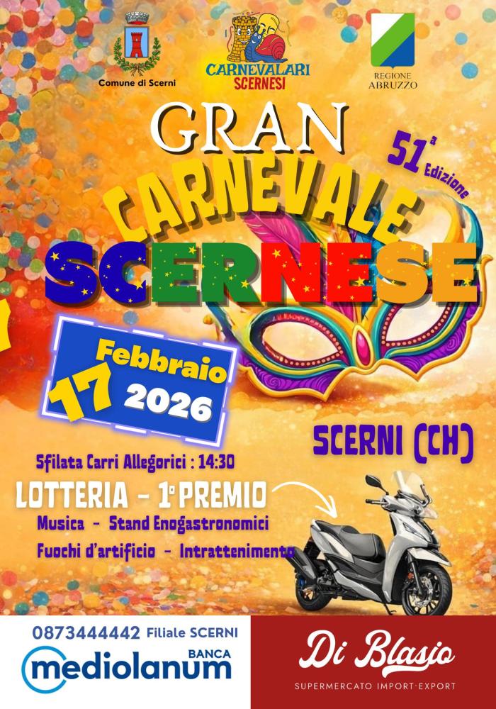 Tutto pronto per la 51ª edizione del Gran Carnevale Scernese, uno degli appuntamenti più attesi del territorio che quest'anno celebra un nuovo capitolo della sua storica tradizione.