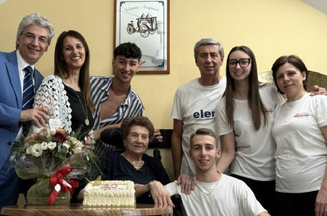 Giornata in allegria e di festa ieri per la famiglia Bello, proprietaria della storica gelateria nel centro storico di Casalbordino. La signora Teresa, mamma di Cosimo (attualmente titolare della gelateria) e del fratello Remo, ha compiuto 90 anni.