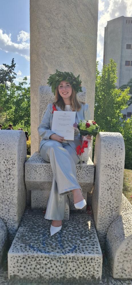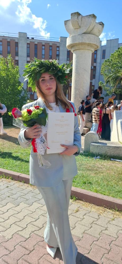 Ti auguriamo un futuro radioso, pieno di successi e soddisfazioni. Che questo sia solo l'inizio di un percorso ricco di realizzazioni. Ad maiora! Alla neodottoressa i migliori auguri dai suoi genitori, Cinzia e Nicandro, dalla sua famiglia e dalla nostra redazione.